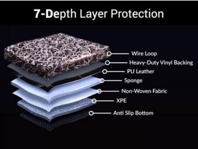 A perfect combination of luxury, styling and maximum protection. 7d mat raised edges to cover the entire floor area and provide maximum protection from dust, oil, mud, water, and snow. These mats are 100% Environment-friendly. 7D mat has also a grass mat attached on the top surface to give the extra protection and make these mat easy wash and maintain. On the bottom side of the mat is covered with the Velcro sheet to make anti-slip. Very easy to install and maintain these mat wash anytime because mats are 100% waterproof. These 7d floor mats will be made with the best quality materials and also provide 7 depth layer protection.